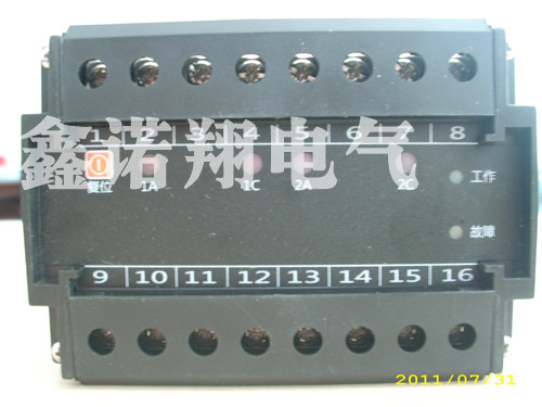 六、技術參數 6.1 正常漏電流IL:20V:≤10uA 6.2 導通電壓UC:150V±10%(UC可根據用戶要求) 6.3 導通時間:≤≤2mS 6.4 CT保護容量:AC 220V/5A;50A/10mS 6.5 遙信繼電器接點容量:AC 220V/5A 6.6 復位方式:M:手動復位;A:自動復位+手動復位 6.7 抗震性能:10~50~10Hz 2g 3min 6.8 抗干擾:4.4KV/M 6.9 耐壓:2.5KV/AC 6.10 可靠性:符合IEC834-1要求